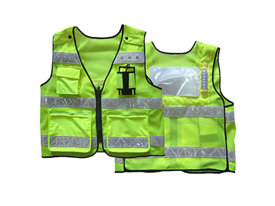 采用尼龍熒光黃(綠)不易變形起皺,細網眼設計,通透性好,穿戴舒適,面料主色為熒光黃,顏色美觀,并有一定的視覺警示作用。雙燈前后顯示,紅藍爆閃白光常亮,LED電子發光二極管燈珠,紅藍爆閃效果夜間距離≥500米;