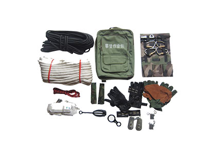 主要配置:主繩、輔繩、安全帶、頭燈、手式上升器、手套、8字環(huán)、主鎖、胸式上升器、下降保護(hù)器、長(zhǎng)扁帶、短扁帶、繩索保護(hù)套、攀登包。