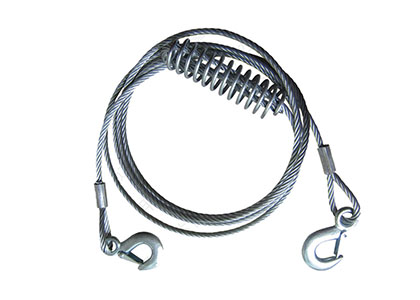 帶鎖鐵鉤牢固安全,并能防止拖車時鐵鉤脫落。鋼絲材質拖車繩能承受很強的拉力,方便你將車拖離拋錨地點,請勿超過核定噸位使用;應經常檢查以保證拖帶的正常使用。