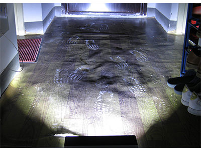 KMS-ZJD LED可變光寬幅足跡搜索光源,采用大功率LED冷光源,前置有廣角扁平光光學系統(tǒng)。出射光型為扁平光,出光口50cm處矩形光照面寬為80cm掠射地面,非常清晰顯現(xiàn)地面痕跡,獲得高反差痕跡采證圖像。該產(chǎn)品具有扁平光光型的光學性能之外,整體結(jié)構(gòu)設計輕巧、簡潔。采用輕質(zhì)鋁合金殼體結(jié)構(gòu),耐摔耐碰,便于清洗污穢與消毒。內(nèi)置>1.5小時持續(xù)照明可充電池,也可以外接電源照明。設計風冷裝置,更體現(xiàn)出該產(chǎn)品的實戰(zhàn)和專業(yè)性能。